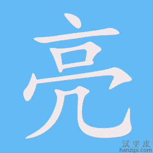 2.发光:天~了。手电筒~了一下。屋子里~着灯光。 3.(声音)强;响亮:洪~。她的歌声脆而~。 4.使声音响亮:~起嗓子。 5.(心胸、思想等)开朗;清楚:心明眼~。听他这么一说,心里就~了。 6.显露;显示:~相。把底儿~出来。这种热带的蝙蝠,一~翅膀足有脸盆大。 7.姓。 亮,有形容词词性,动词词性和名词词性。作形容词时有响亮、明白、清楚、正大光明、明亮等意思。此外,三国时期蜀国著名的政治家、军事家诸葛亮(字孔明,号卧龙,全名为诸葛孔明)也自称“亮”。 |