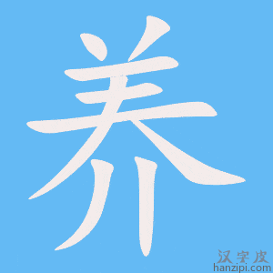 2.饲养动物,培植花草:~花。~殖。 3.生育,生小孩儿。 4.抚养的(非亲生的):~子。~父。~母。 5.教育,训练:培~。教~。 6.使身心得到滋补和休息:~病。~心。~性。休~。营~。~精蓄锐。 7.保护修补:~路。 汉语汉字,拼音:yǎng |
