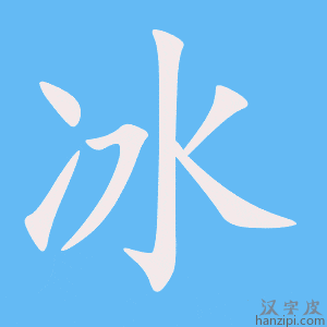 2.因接触凉的东西而感到寒冷:刚到中秋,河水已经有些~腿了。 3.把东西和冰或凉水放在一起或放在冰箱里使凉:把汽水~上。 4.像冰的东西:~片。~糖。干~。 5.姓。 冰,汉字,常作名词。会意。从仌,从水。金文作“仌”。金文字形表示水凝成冰后,体积增大,表面上涨(上拱)形。《说文》:“冻也,象水凝之形”。小篆繁化,增加“水”变成。从“仌”从“水”的会意字,于是“仌”就专用作部首。本义:水冻结而成的固体。 |