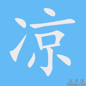 1.温度低;冷(指天气时,比“冷”的程度浅):阴~。~水。过了秋分天就~了。 2.比喻灰心或失望:听到这消息,他心里就~了。 3.悲伤;愁苦:凄~。悲~。 4.冷落;不热闹:荒~。苍~。 5.姓。 凉1. 温度低:~快。~爽。~意。~气。阴~。~丝丝。~亭。荒~。寒意~。2. 喻灰心,失望:听到这消息,我心~了半截。3.西晋末年至北魏,各族统治者在今武威市凉州区为中心建立的割据政权:五~(前、后、南、北、西)。4.异体“凉”,为古“凉”俗体,古籍中多作“凉”。 |