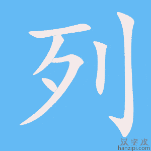 2.安排到某类事物之中:~入议程。把发展教育事业~为重要任务之一。 3.行列:出~。前~。 4.用于成行列的事物:一~火车。 5.类:不在此~。 6.各;众:~国。~位观众。 7.姓。 列(拼音:liè),意为⑴ (形声。从刀,本义:割,分);⑵ “裂”的古字。分割;分解 [break up]。⑶行列;归类于某种事物;安排到某种事情之中。 |