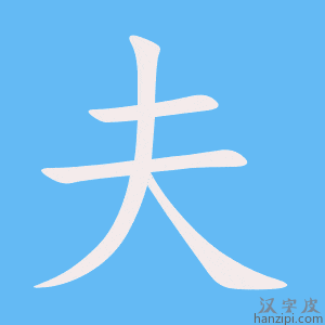 夫(fū):从一从大。擎天承大之人也。天、大,普世价值也。《说文》“夫,丈夫也。从大,一以象簪也,周制以八寸为尺,十尺为丈,人长八尺,故曰丈夫。”(1) 象形。甲骨文字形,像站着的人形(大),上面的“一”,表示头发上插一根簪( zān),意思是成年男子,是个丈夫了。古时男子成年束发加冠才算丈夫,故加“一”做标志。本义:成年男子的通称。(2) 同本义 [man]夫,丈夫也。——《说文》。按,夫从一大,会意兼象形。周制以八寸为尺,十尺为丈,人长八尺,故曰丈夫。旧时称成年男子:渔夫。农夫。万夫不当之勇;旧时称服劳役的人:夫役。拉夫;夫子;丈夫;量词,指一农夫所受之一百亩耕地;文言发语词、文言助词、指示代词,相当于“这”或“那”;夫妻。 |