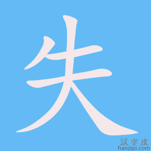 2.找不着:迷~路径。 3.违背:~信。~约。 4.没有把握住:~手。~足。 5.没有达到目的:~意。~望。 6.改变常态:~色。~神。 7.错误:过~。千虑一~。 失,汉字,其读音:shī。丢失。《说文》:“失,纵也。从手,乙声。”2014年12月19日由国家语言资源监测与研究中心、商务印书馆等主办的“汉语盘点2014”年度字词今揭晓,“失”作为国际字被推上榜。 |