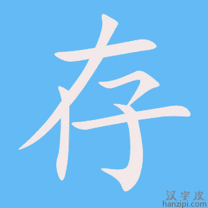 2.储存;保存:封~。~粮。 3.蓄积;聚集:~食。新建的水库已经~满了水。 4.储蓄:~款。~折。零~整取。把暂时不用的现款~在银行里。 5.寄存:~车处。行李先~在这儿,回头再来取。 6.保留:~疑。~而不论。去伪~真。 7.结存;余留:库~。收支相抵,净~二百元。 8.心里怀着(某种想法):~心。心~侥幸。不~任何顾虑。 9.姓。 存,cún,从才从子。正从地下向上萌发(才)的生命(子)。汉语汉字,意为:存在,保留,寄放,停聚或怀有。 |