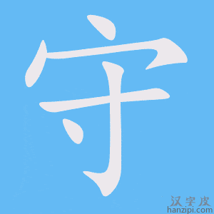 2.遵循;遵守:~约。~信。~法。 3.看守;守候:~门。~着病人。 4.挨着;靠近:~着水的地方可多种水稻。 5.古又同“狩(shòu)”。 |