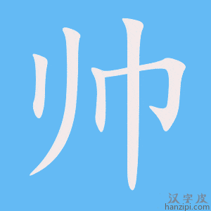 2.姓。 3.英俊;潇洒;漂亮:这个武打动作干净利落,~极了。字写得真~。 帅(shuai)从垖从巾。(1) (形声)率(2) 同本义 [shawl],佩巾也。——《说文》。帅,佩巾率众者,音通率,组织、带领者。率,捕鸟(的器具)。是汉语汉字之一,军中之主曰帅。现代通常用于形容男性漂亮 [beautiful],如:这人长得真帅。(3)姓氏 |