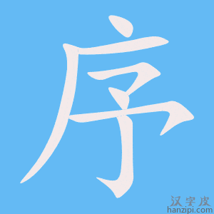 2.排次序:~次。~齿。 3.开头的;在正式内容以前的:~幕。~曲。 4.序文:写了一篇~。 5.古代指厢房:东~。西~。 6.古代由地方举办的学校:庠~。 古代另有一种序是惜别赠言的文字,叫作“赠序”,内容多是对于所赠亲友的赞许、推重或勉励之辞,是临别赠言性质的文体。 |