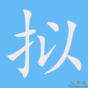 2.打算:~采纳。 3.模仿:模~。 拟,形声字,从手,疑声。本义为揣度,猜测,后又有类比,效仿,打算,起草等意。其中,拟人为一种文学作品中一种常见的修辞手法。 |