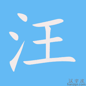 2.(液体)聚集:路上~了一些水。眼里~着泪水。 3.小而浅的积水坑:水牛在泥水~里打滚。 4.用于液体:一~血。两~眼泪。 5.姓。 6.形容狗叫的声音:狗~~叫。 汪,形声。字从水从王,王亦声。“王”意为“众所归往(者)”。“水”与“王”联合起来表示“众水所归往”。 |