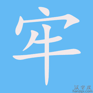 2.古代称作祭品的牲畜:太~(古代帝王、诸侯祭祀社稷时,牛、羊、豕三牲全备之称)。少~(诸侯宗庙,用羊、豕之称)。 3.监禁犯人的地方:监~。坐~。 4.结实,坚固,固定:~固。~稳(a.稳妥可靠;b.物体稳定,不摇晃)。~记。~不可破。 |