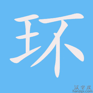 2.指射击、射箭比赛中射中环靶的环数,射中靶心,一般以十环计,离靶心远的,所得环数依次递减:三枪打中了二十八~。 3.环节:从事科学研究,搜集资料是最基本的一~。 4.围绕:~绕。~球。~城铁路。 5.姓。 环,huán,从王从瞏。圆形而中间有孔的玉器。〈名〉(1) 形声。从玉,瞏(huán)声。本义:圆形而中间有孔的玉器。(2) 同本义。[jade bracelet]本义指圆形而中间有孔的玉器,化学中多指由一圈晶元联结而成的结构或蛋白质的一种二级结构,另外环还是数学领域的一种专用术语。 |