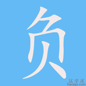 2.担负:~责任。身~重任。 3.依仗;倚靠:~隅。~险固守。 4.遭受:~伤。~屈。 5.享有:久~盛名。 6.亏欠;拖欠:~债。 7.背弃;辜负:~约。忘恩~义。有~重托。 8.失败(跟“胜”相对):胜~。~于客队。 9.属性词。小于零的(跟“正”相对):~数。~号。 10.姓。 负,fu,从人从贝,有所恃也。负字的本意解析:负,其正体字为负,其上为一个刀字,意为持刀抢劫;其下为一个贝字,贝就是古代的钱,在此代表东西。 |