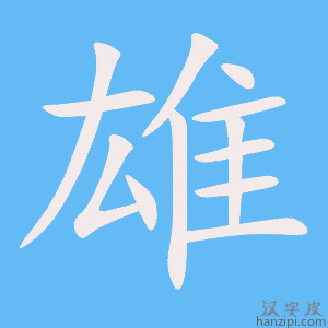 2.强有力的:~师。~辩。 3.强有力的人物或国家:称~。战国七~。 4.宏伟的;充足的;有气魄的:~图。~厚。~心壮志。 雄是汉字,拼音是xióng,总笔画是12笔,意思是阳性的,与“雌”相对;强有力的; 强有力的人或国家。 |