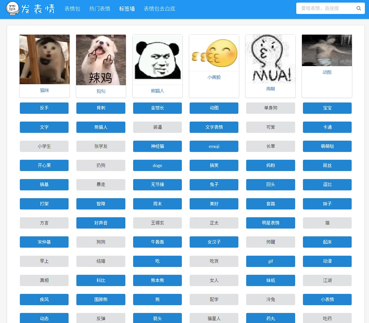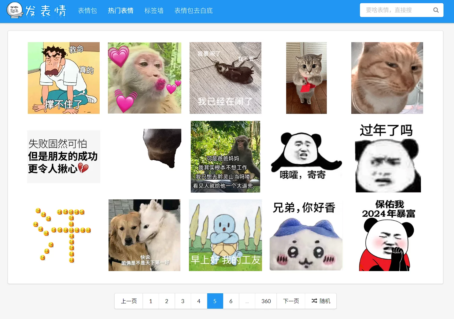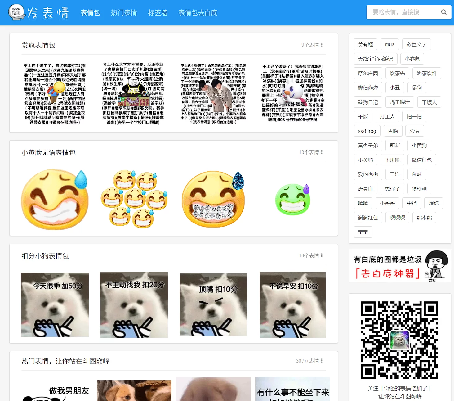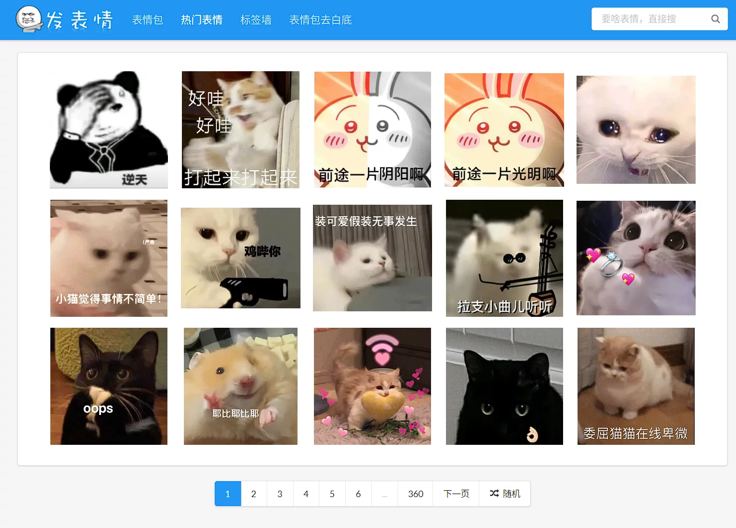 这种表情站点,我个人觉得最好是那种下拉不断出现图片的模式,这样用户可以看的更多,就会发现更多。