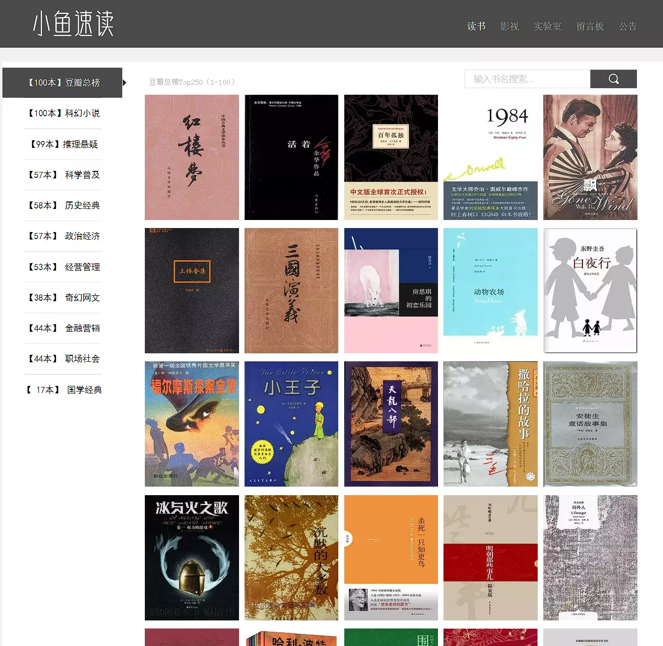 如截图所示,站点提供了很多类型的书籍以及电影,这些内容并不是真的书籍内容,而是整理来自B站的解说视频合集,通过视频你可以更加快速的了解书籍内容。