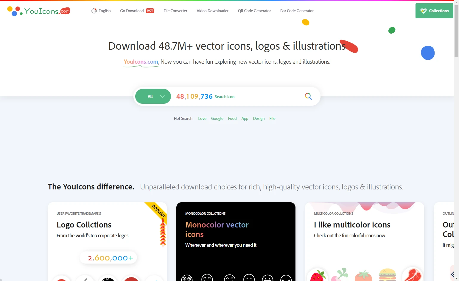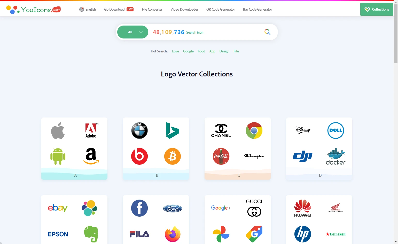 站点图标数量还是很多的,根据官方显示,里面有超过4810万个图标,这么多图标我相信总会有你需要的,而且首页里面很多都是大厂的图标,对于一些建站用户肯定用得到。