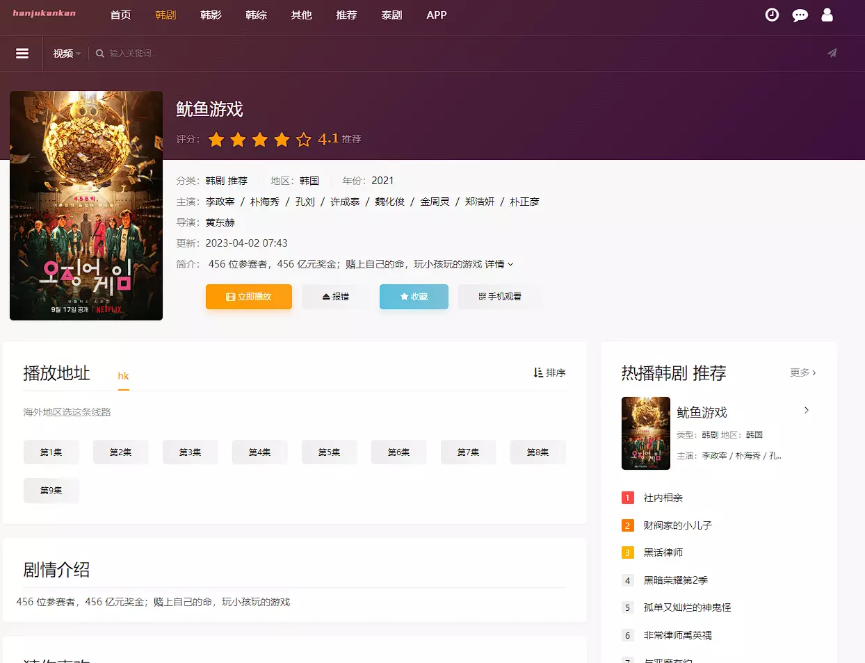 一个比较常规的资源采集站点,不过和其它采集站有点不一样的就是这里面的视频资源貌似没有硬广告,这个是很神奇的地方。