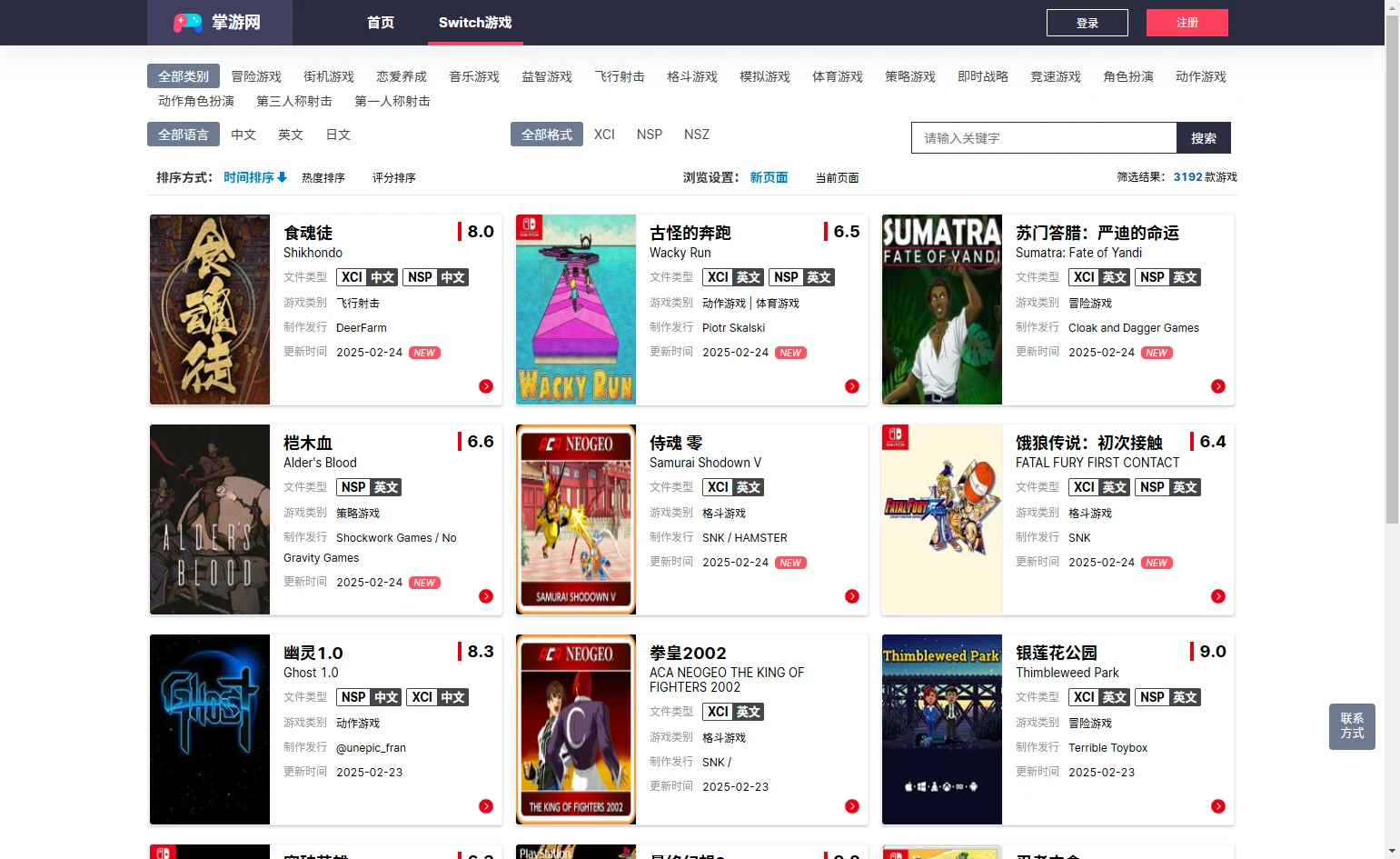 如果你不想搜索游戏,可以直接点击导航栏的「Switch游戏」按钮进入列表查看你感兴趣的内容,如下图: