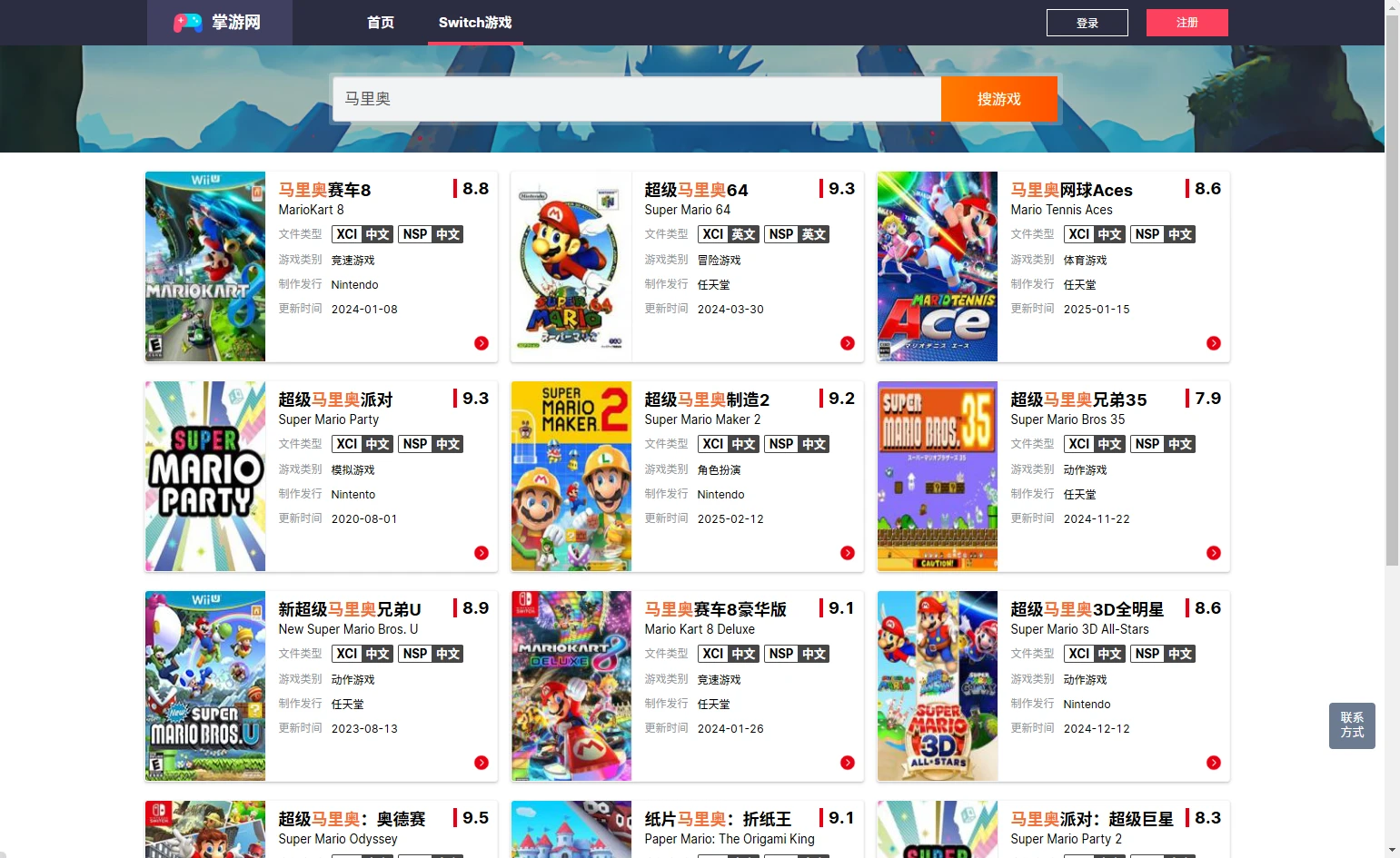 我这里搜索了一下“马里奥”,结果如下: