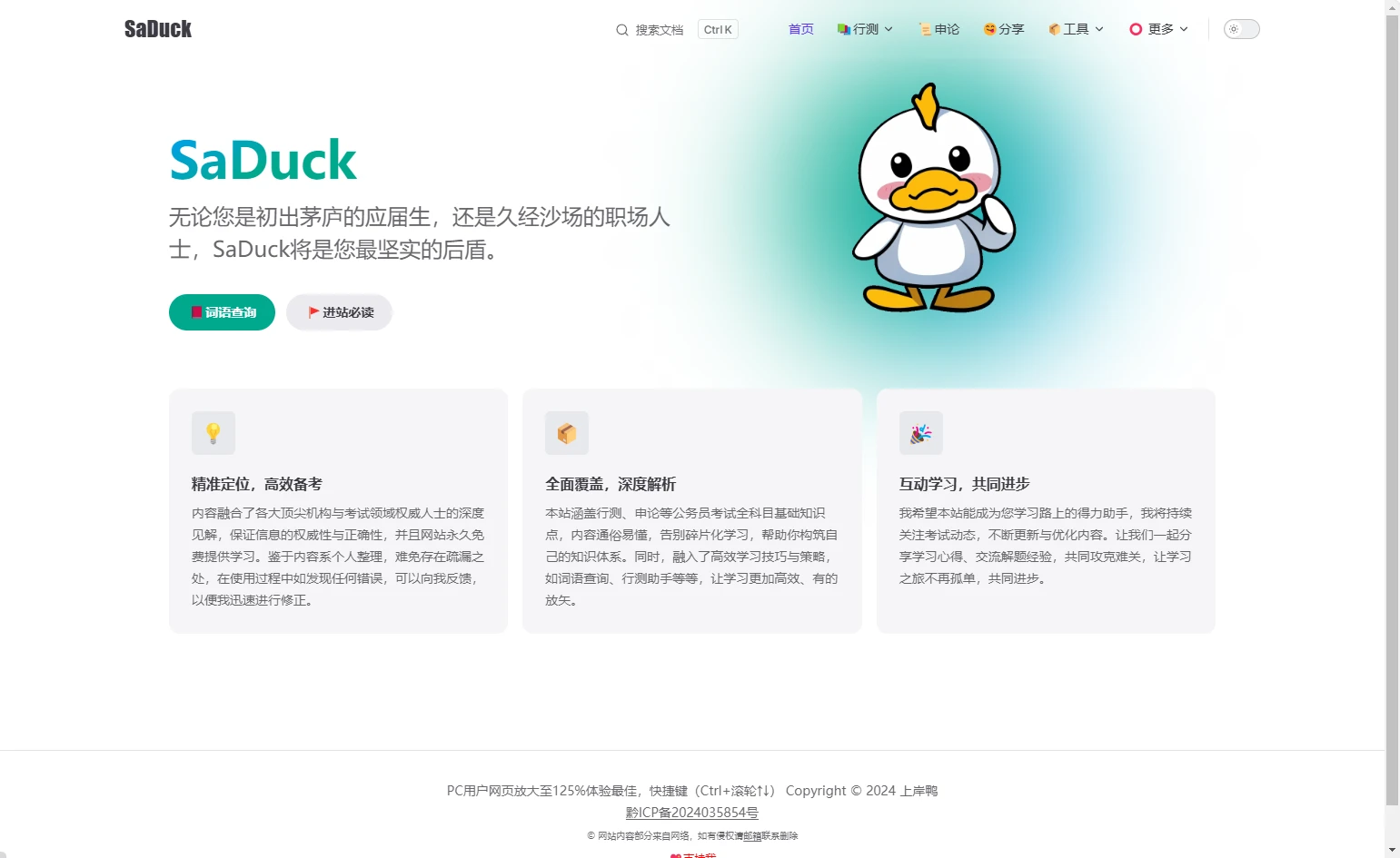 通过首页可以了解到站点的定位,同时也解释了站点内的内容涵盖行测、申论等公务员考试全科目基础知识点,所以如果你觉得有需要,可以进行收藏。