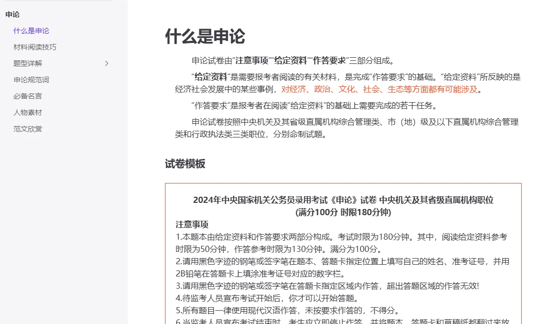至于申论页面,具体截图如下: