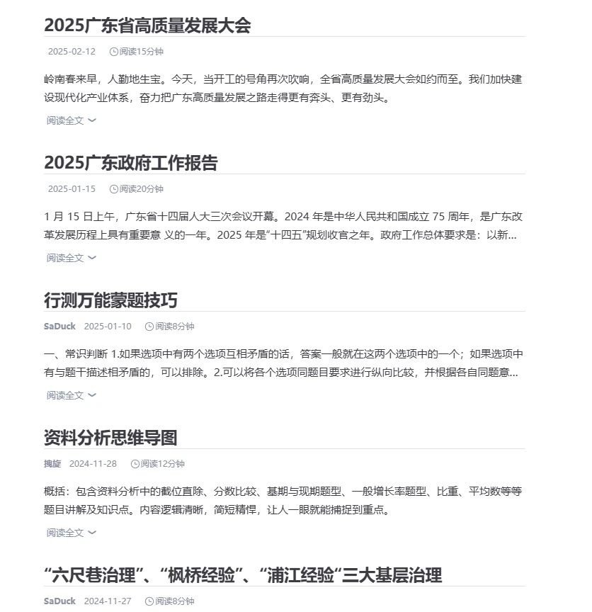 除了行测和申论两个大类之外,还有一个分享和工具,都是你可以用到的内容,分享的页面里面都是一些最近的政策内容,可能和考试有关系吧: