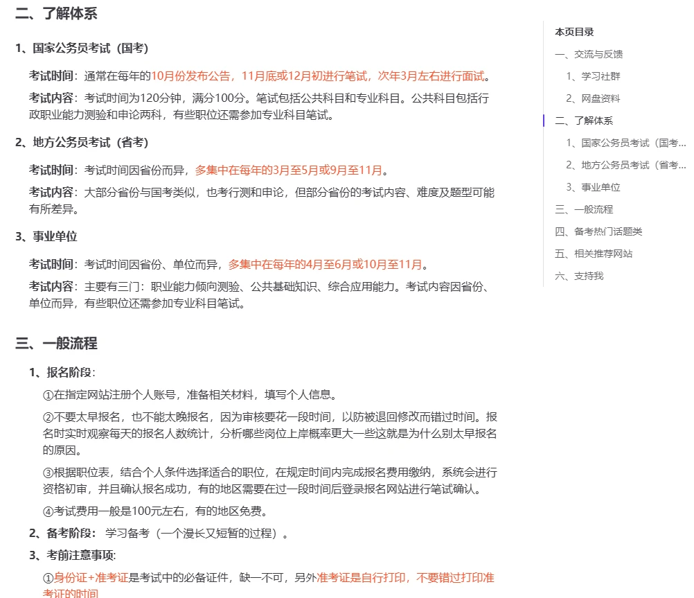 其次,该站点提供了一个“进站必读”的栏目,如果你打算报考公务员或者事业单位,但是没有任何基础,可以考虑看看这些内容,非常详细: