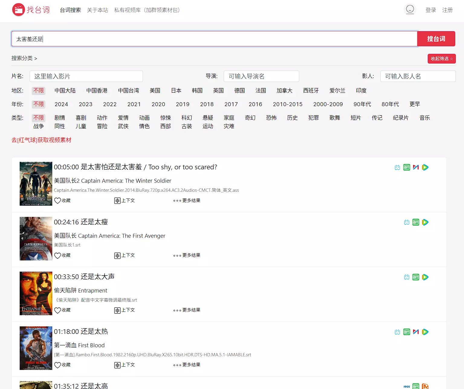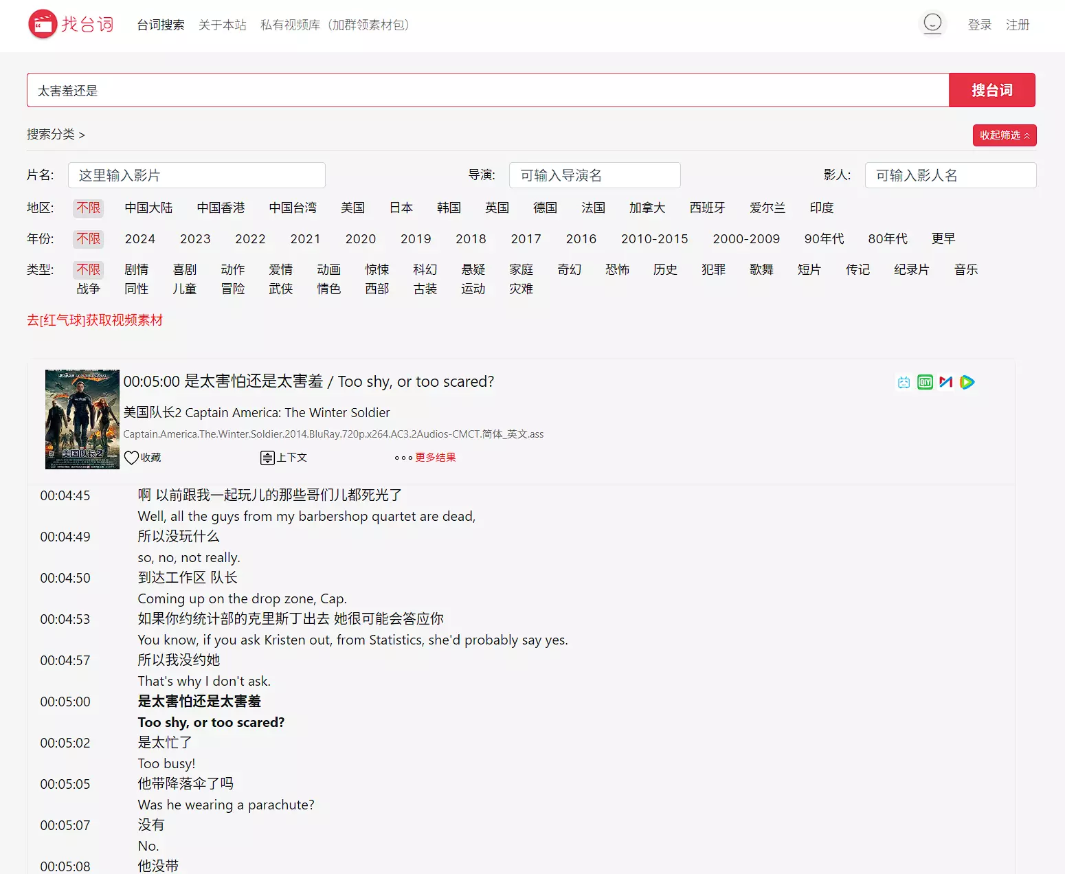 之前介绍了一个站点,主要是寻找动漫内容,所以我当时就比较感兴趣,是否可以通过台词寻找对应的电影内容,最终发现了本站点。