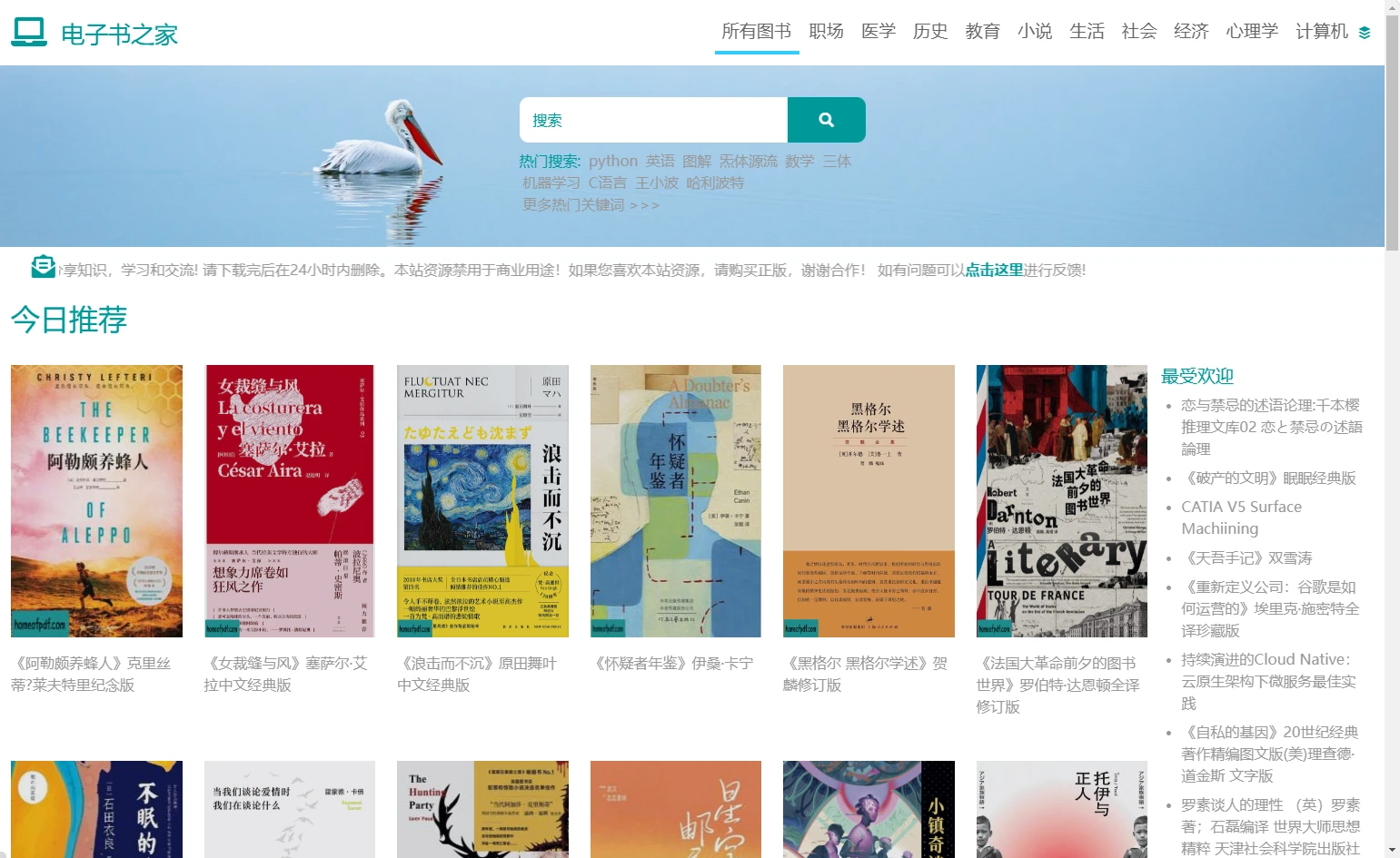 站点名为电子书之家,里面包含了大量的PDF格式的电子书方便大家进行查看和下载,如果你对于一些中文电子书比较感兴趣,可以看看,站点首页截图如下: