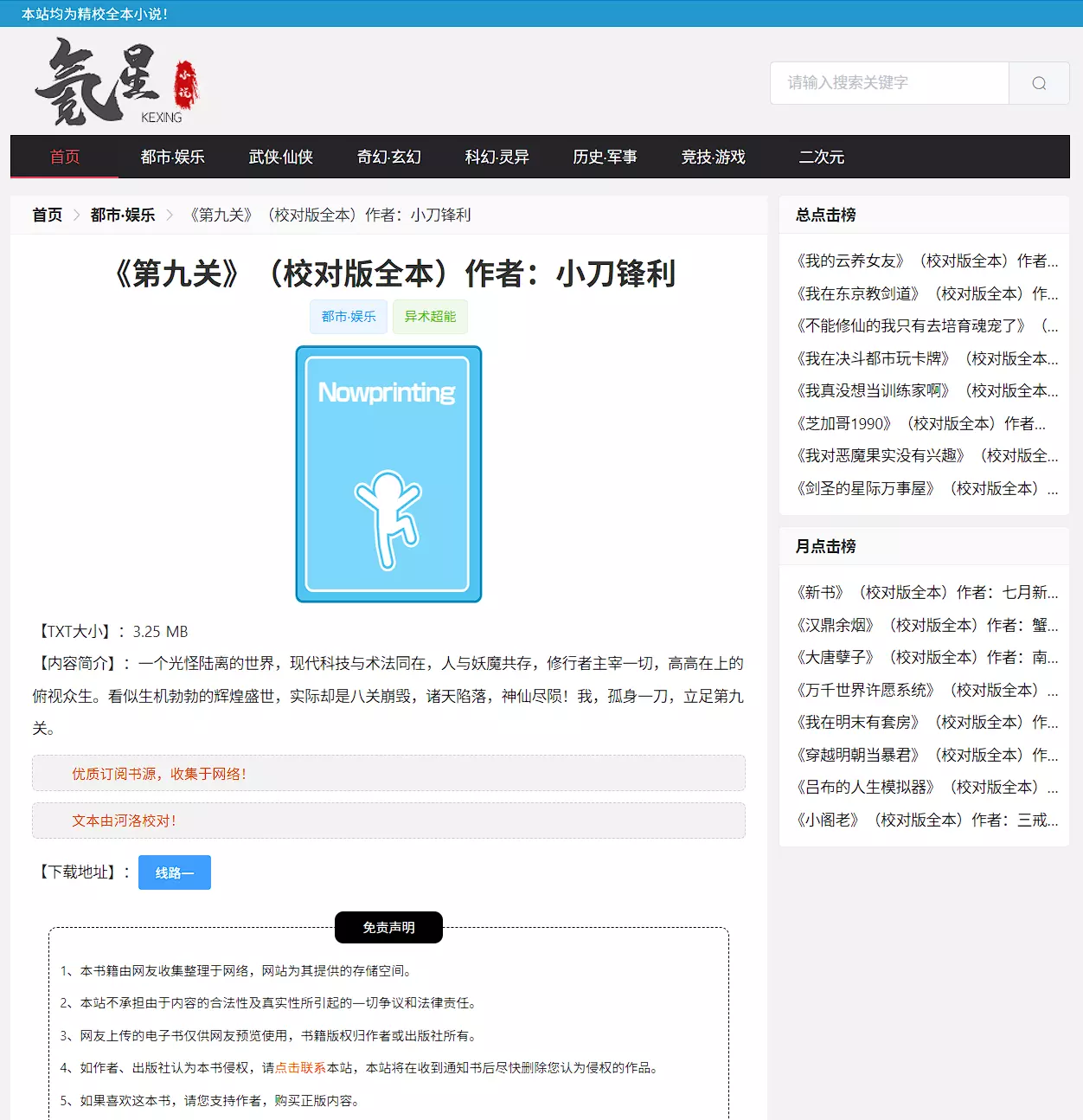 小说站点很多,但是这个小说站点确实是用户体验上面最简单也是最直接的一种方式,大家可以自行前往体验一番。