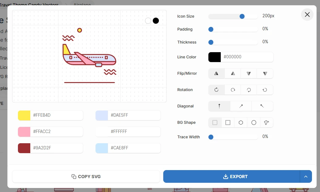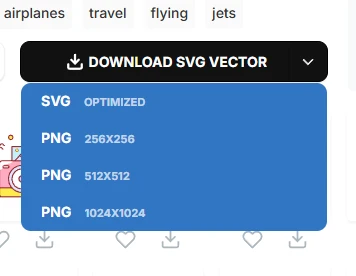 你可以选择图片的格式和大小进行下载,默认情况下是下载svg格式,我也是比较推荐的,只不过使用途径比较局限,多半是开发者用到。