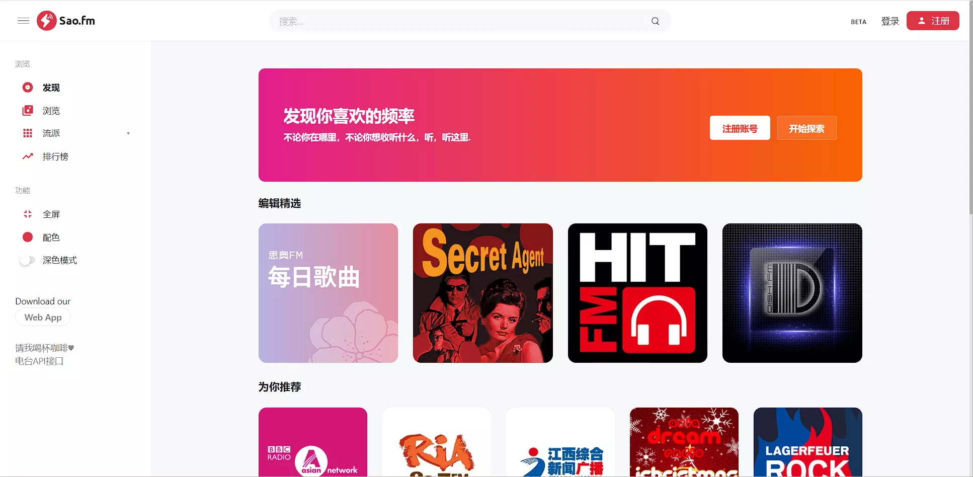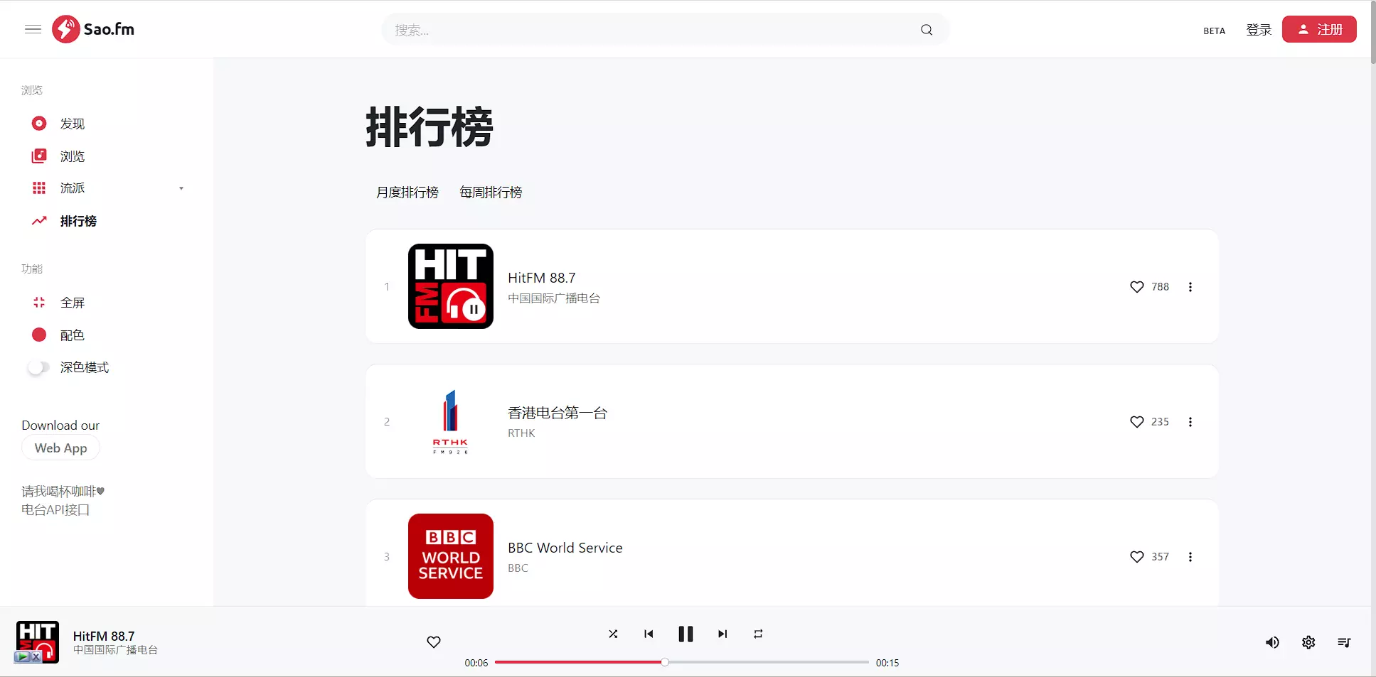 API页面已经列出了支持的广播源,使用之前可以自行查询是否存在自己喜欢的频道。