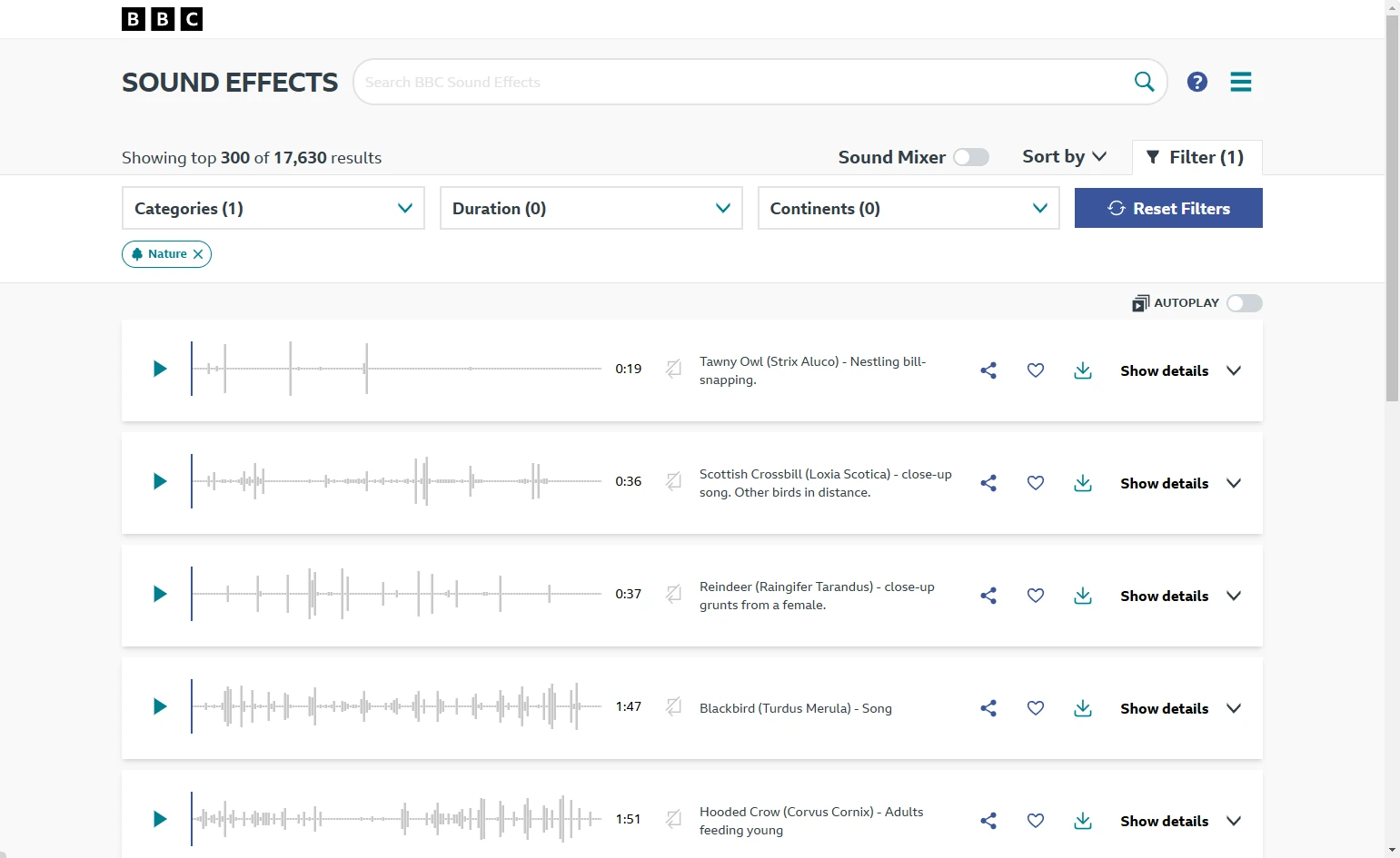 BBC的音效文件说实话是非常具有参考意义的,毕竟拍摄了大量的纪录片,其中的各种音效都是非常真实并且很难得得,如果你是一个自媒体或者正在从事相关行业,这个站点值得收藏。
