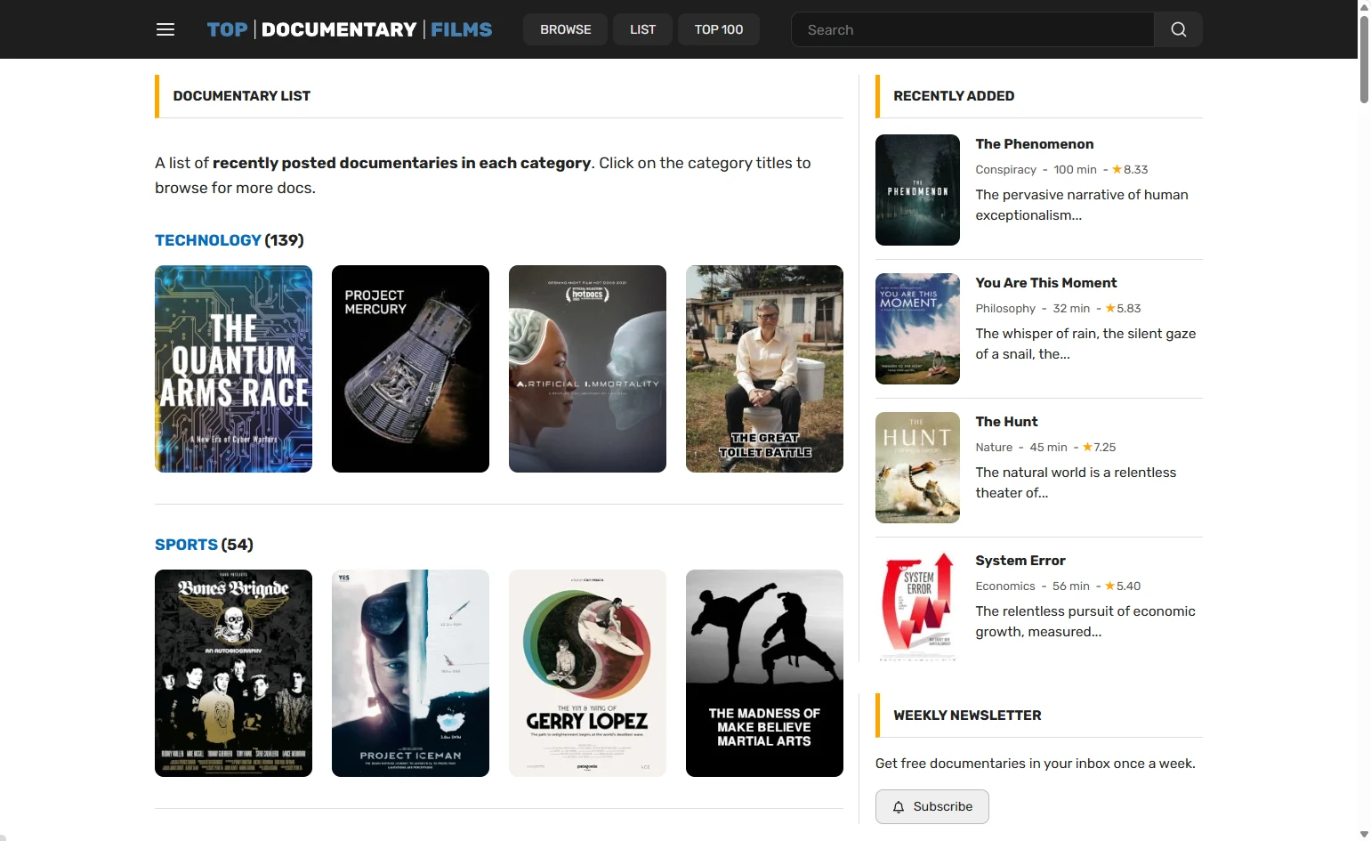内容方面都是来源于YouTube,而该站点则是对于这些视频进行了一个数据处理和筛选工作,如果你是一个纪录片爱好者,正好可以进行科学上网,这个站点或许是个不错的选择。