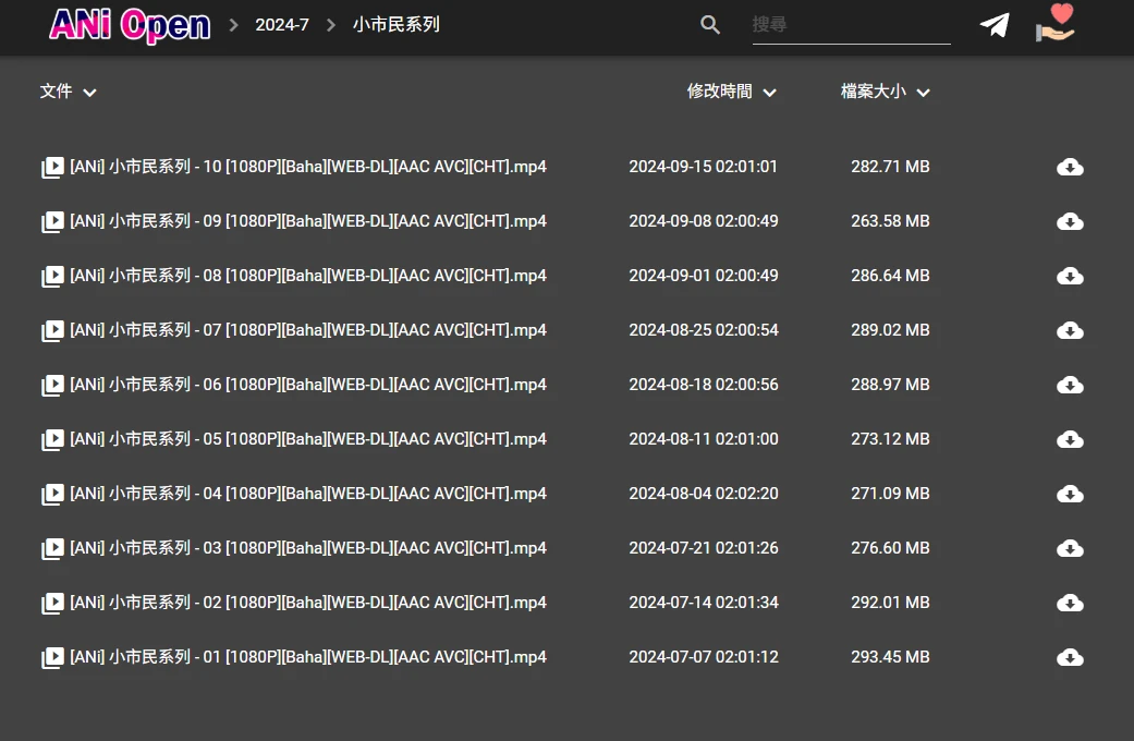 通过截图你可以很快的通过时间段来获取相关资源,同时,如果你想要针对性的获取某个指定动漫的资源,可以直接通过导航栏右边的搜索框进行搜索,下面是搜索结果界面: