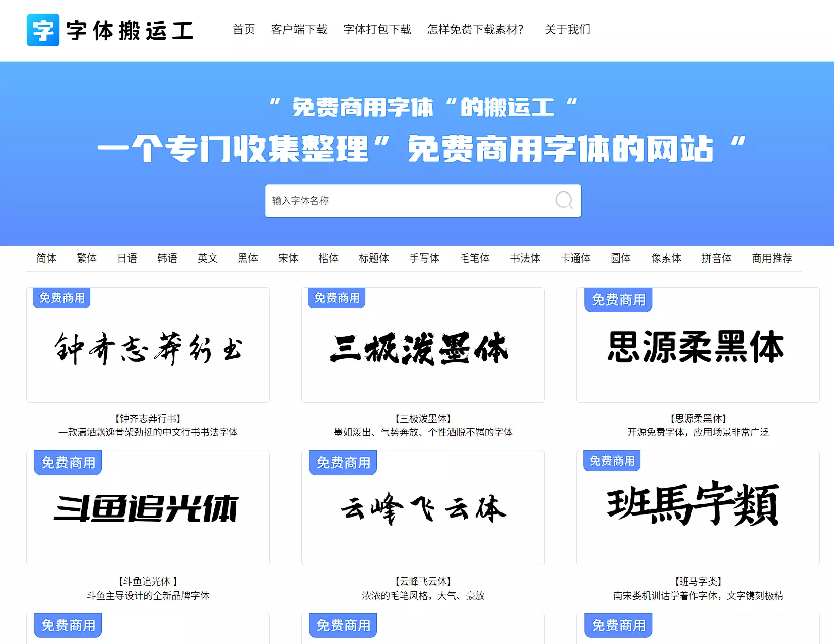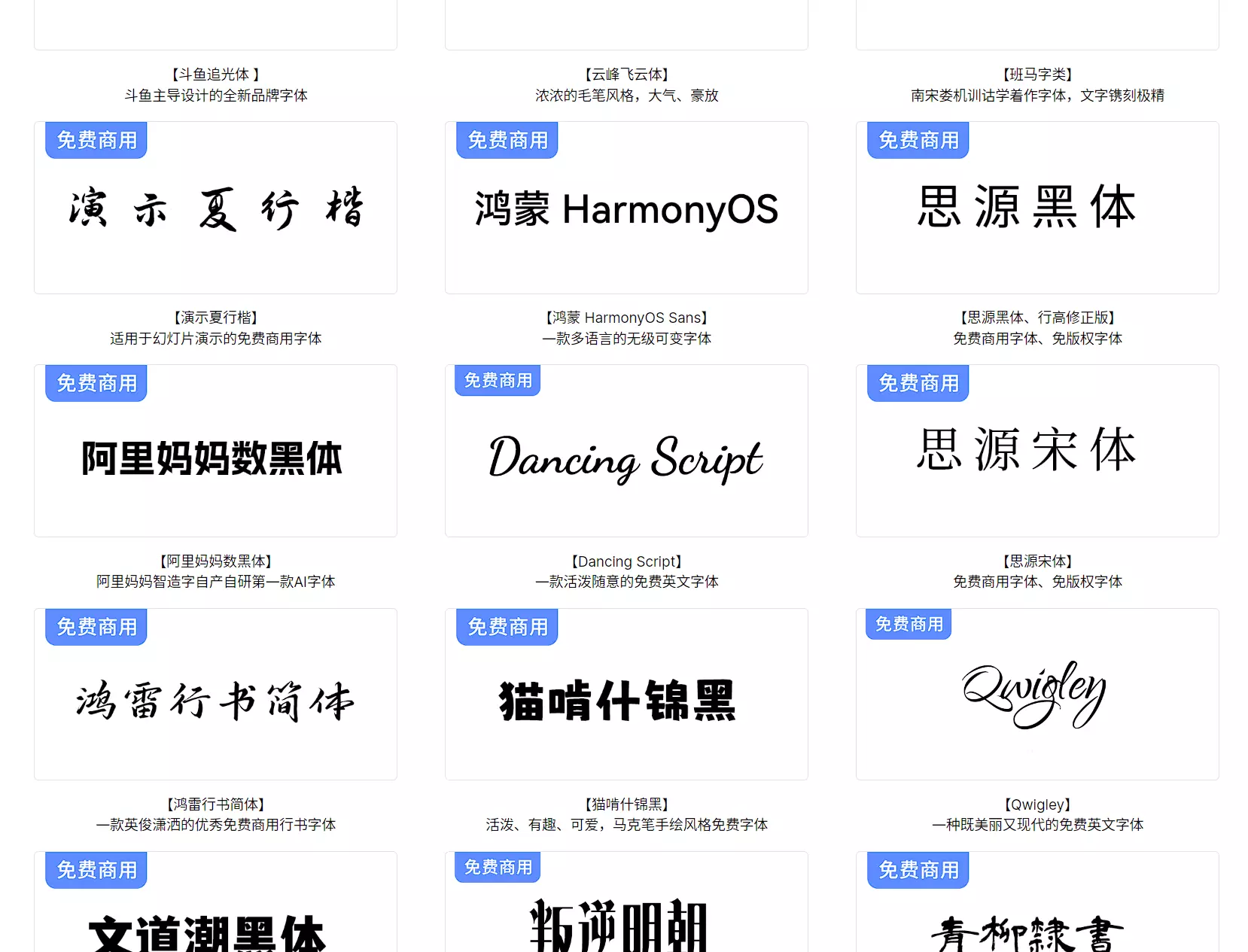 站点提供了大量的字体,标注了都是可以进行商用的,最近这类站点看的还是比较多的,感觉有点站群的意思,基本就是将所有的字体通过不同站点进行分发的感觉。
