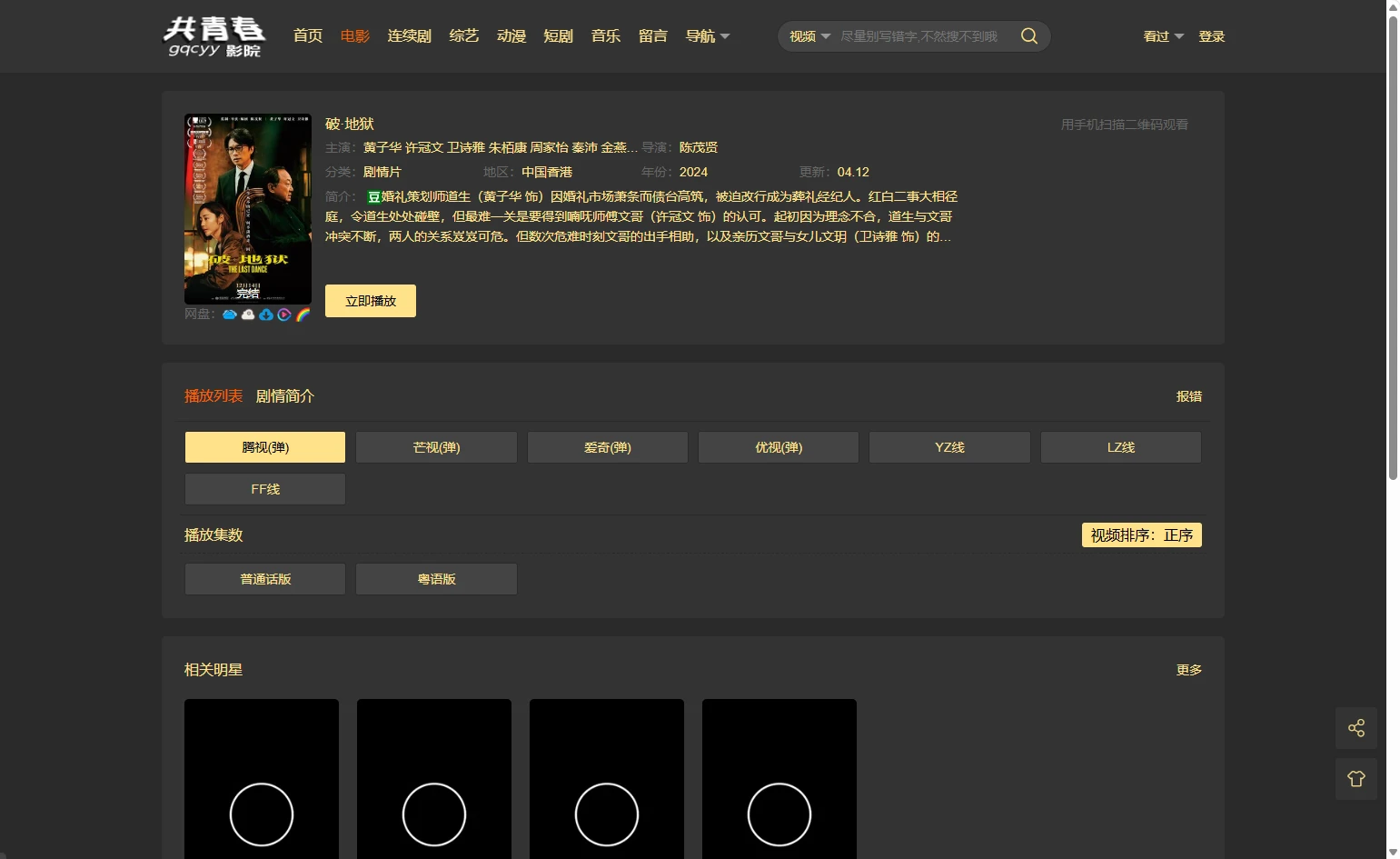 站点界面整体来说还是非常简洁的,除了一些文字广告位之外没有看到什么很过分的广告了,随机选择一个影片进入详情页面: