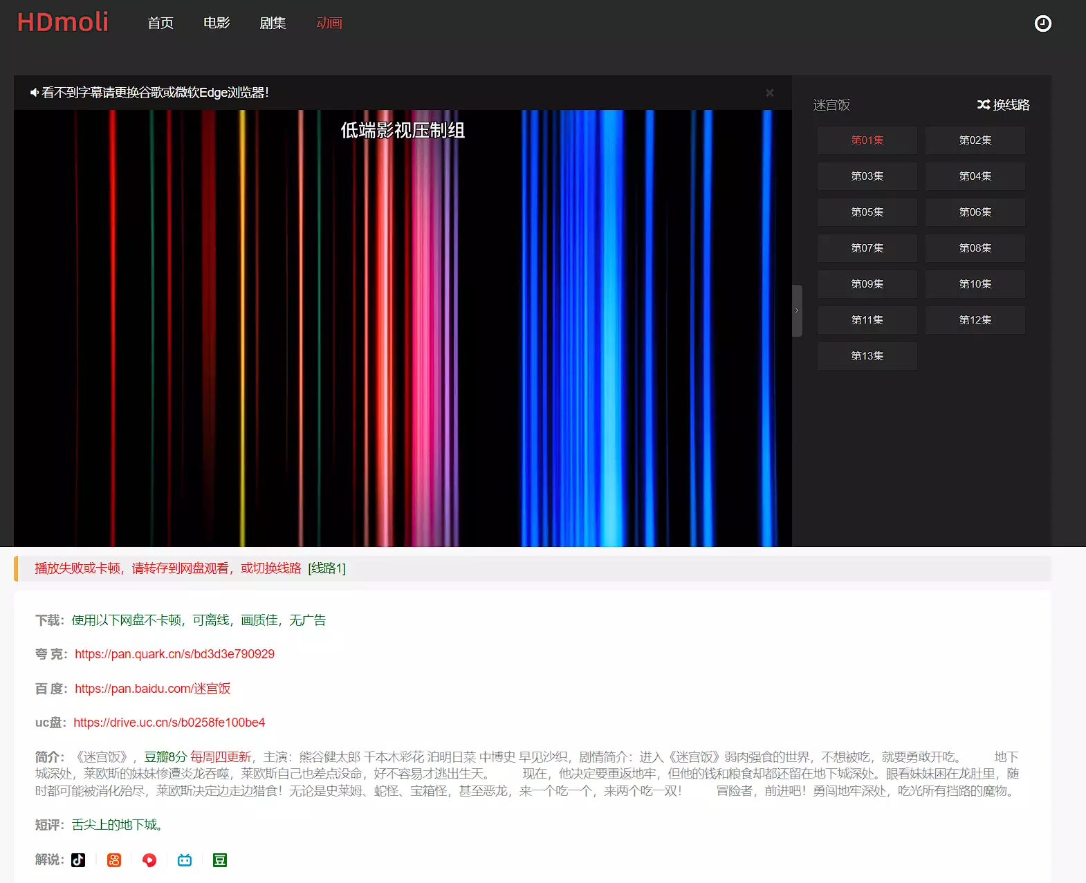 进入页面之后,就可以开始点击播放了,如果你看到了广告,可以考虑安装广告插件,同时,站点最人性化的就是在下方提供了下载地址,而且是三个网盘,可以说非常用心了。