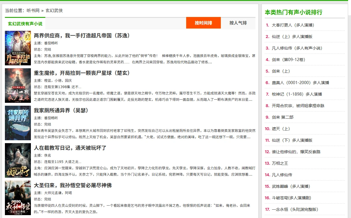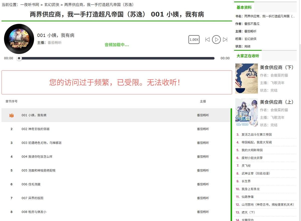 之前介绍了不少小说站点,但是有声小说的站点介绍的比较少,相比之下,我个人更能接受有声小说站点,不过有声小说费耳朵,文字小说费眼睛,不管哪种,都有点难受。