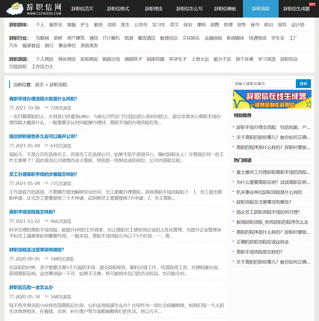 站点非常贴行的给出了一个辞职流程,告诉你入额办理离职手续以及办理之后的五险一金等等问题,这点确实可以帮助到大部分打工人。