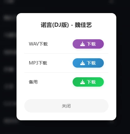 其次,该站点支持歌曲下载,点击下载按钮即可即可看到下面界面: