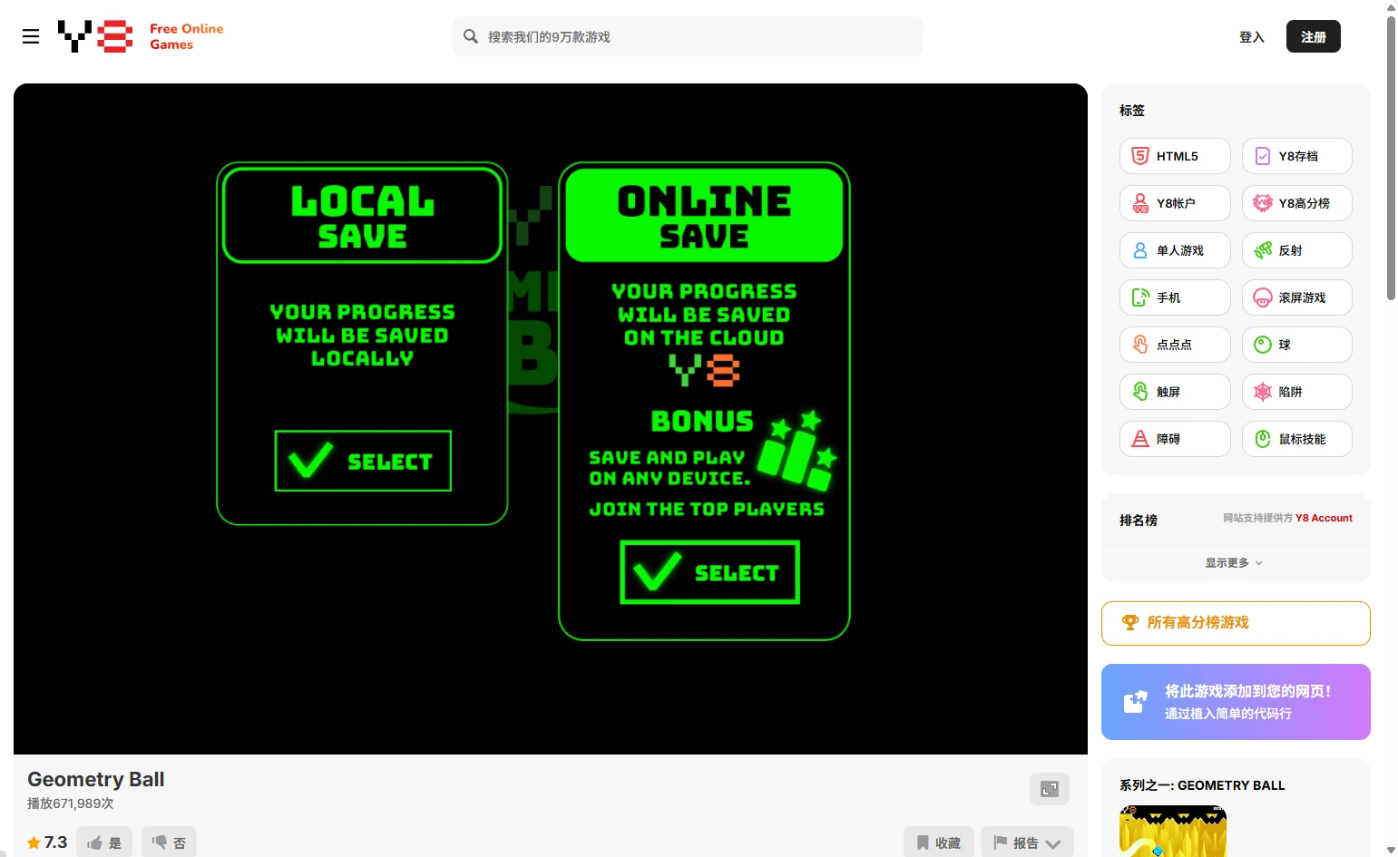同时,该站点支持注册登录,以上方截图的小游戏为例,该游戏支持将游戏成绩保存到站点服务器中,和所有玩家一起进行排名,如果你感兴趣的话,可以尝试进行注册并且登录之后玩耍。