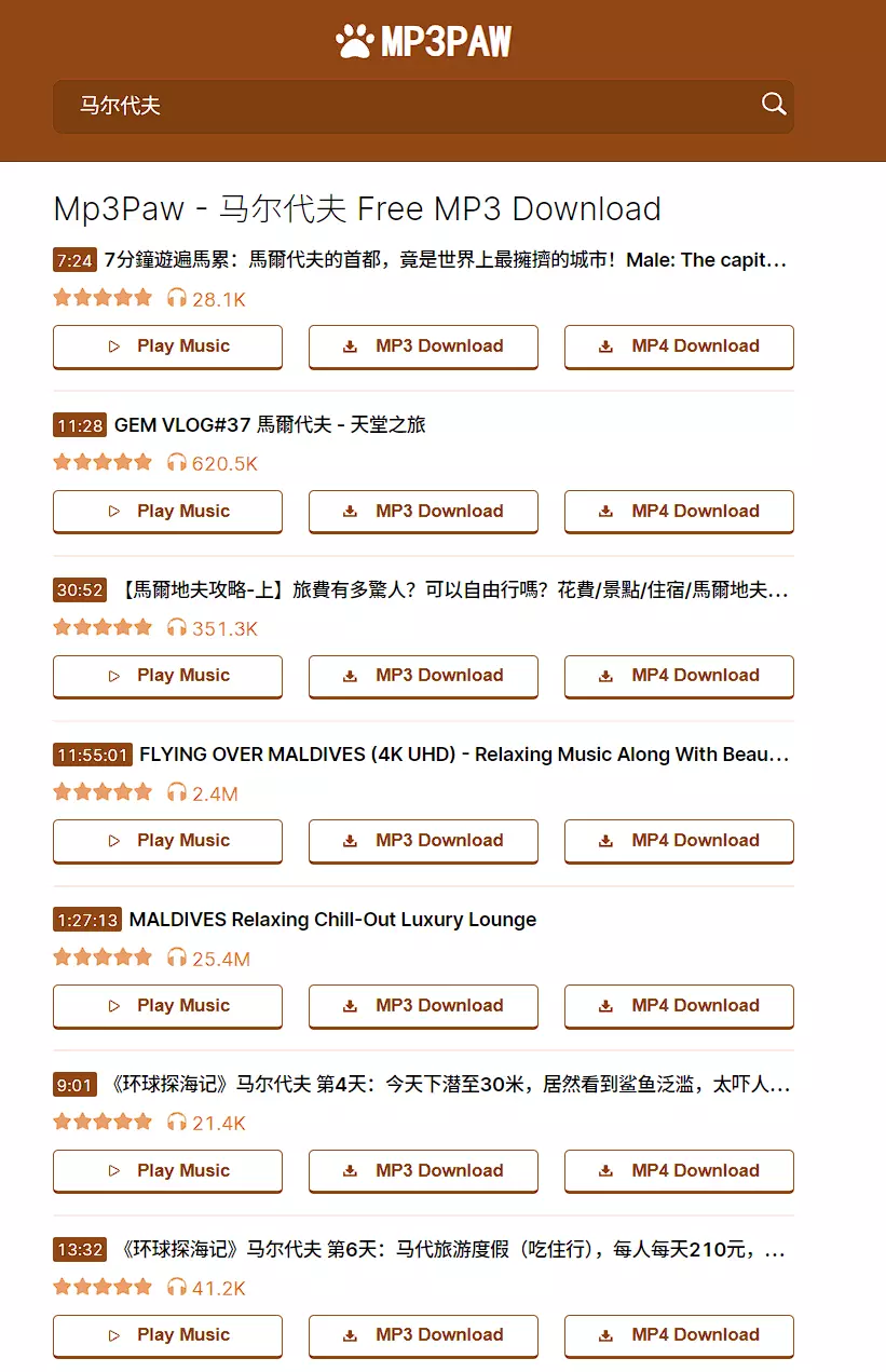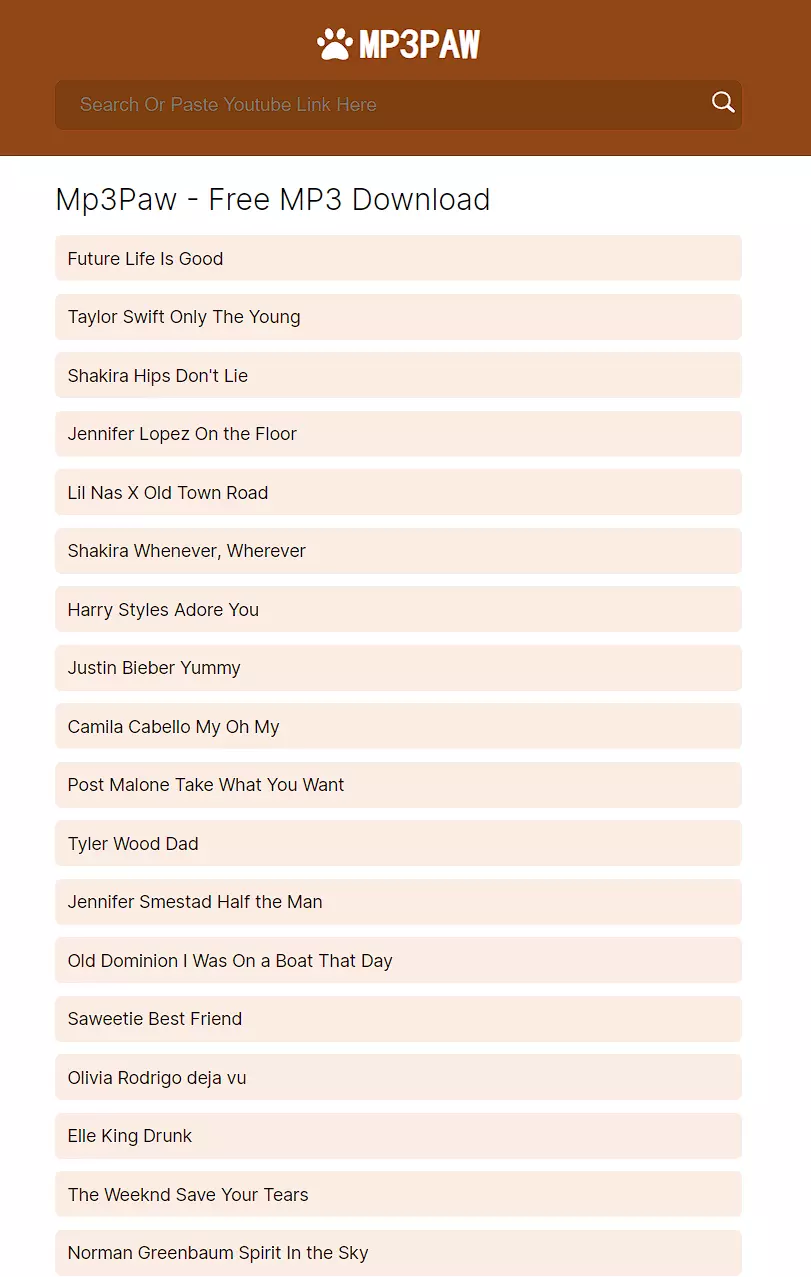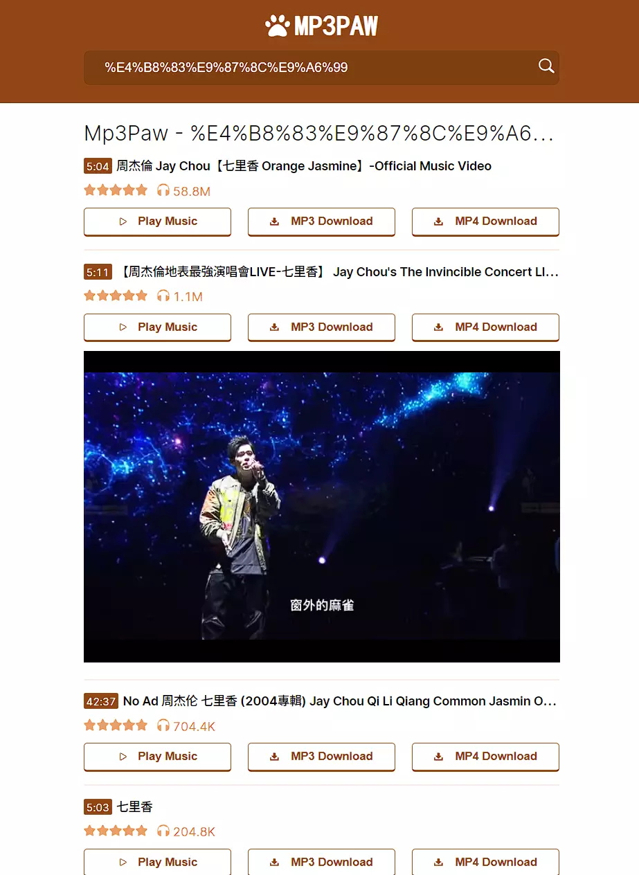 这个站点最开始的标题是免费MP3下载,但是经过我这边测试,发现调用的数据并不是常规的MP3文件,而是搜索YouTube里面含有该标题的内容,简单的说就是一个代下站点。