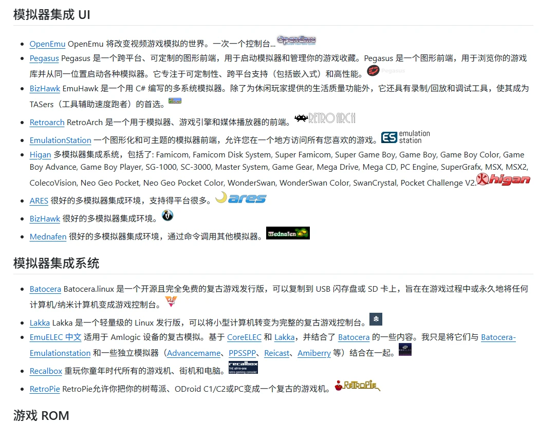 收集和整理各种游戏模拟器,包括街机、任天堂、索尼、世嘉等主流平台
