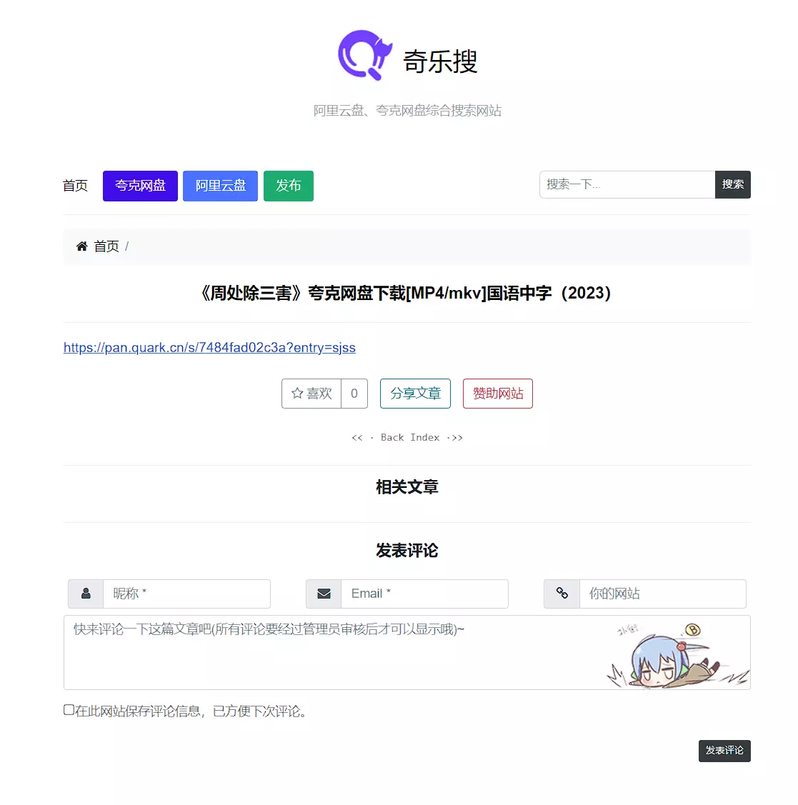 这个站点是我没想到的,我一开始以为是一个常规搜索站点,经过测试发现居然就是一个通过发布文章来发布资源的站点。