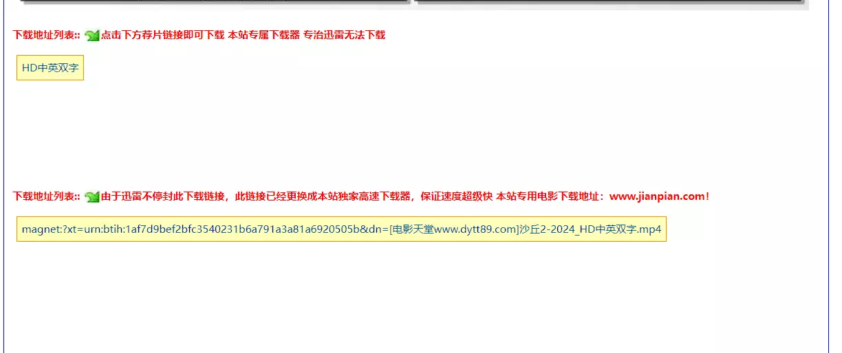 就影视资源站点类型来说,这个站点还是比较常规的,布局方面感觉也是中规中矩,资源存储方面采用了远古方式,但是也是最直接的方式:磁链。