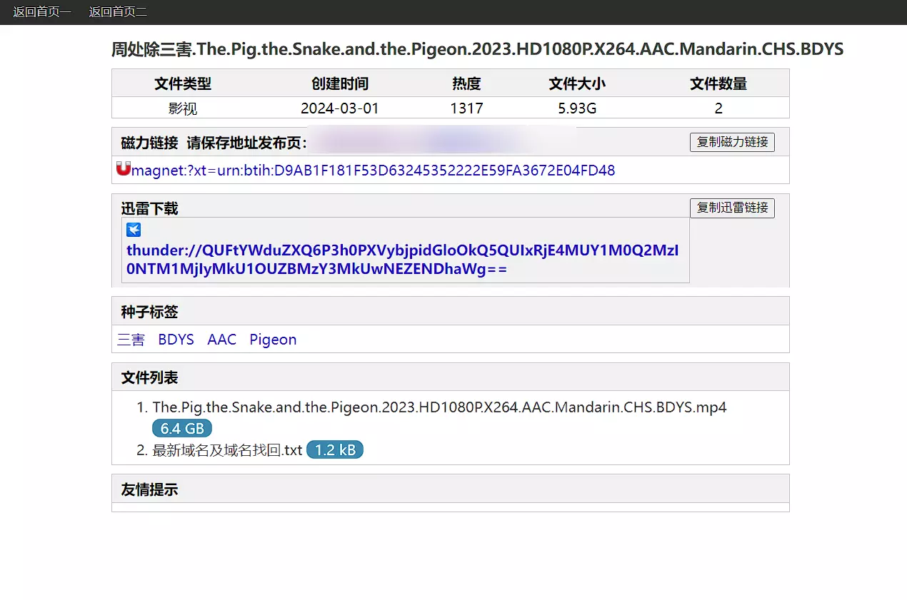 常规磁链站点,作为备用是个不错的选择。需要注意的就是该站点有三个网址,可能是防止丢失,所以准备了三个,任何一个都是可以使用,同样的,数据也是一样的。