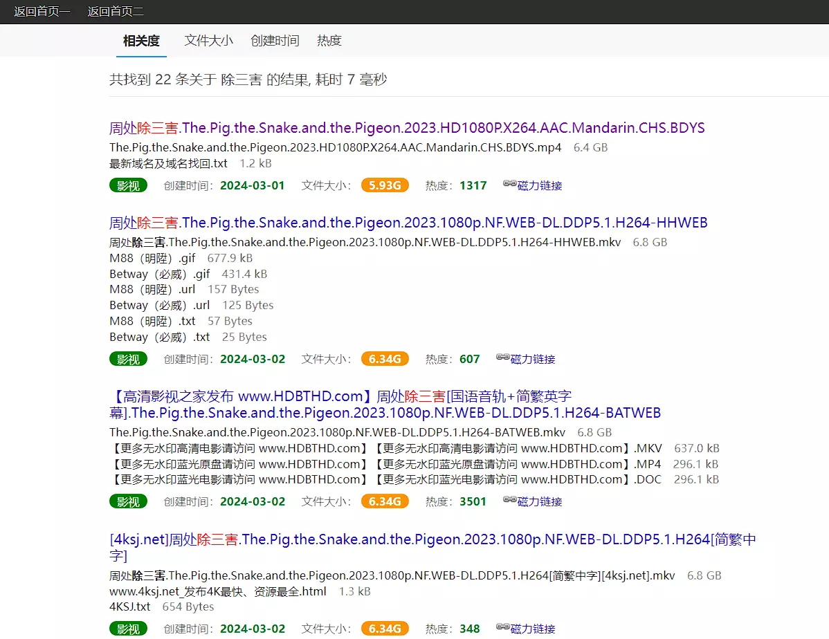 磁力站点的选择一般都是看资源的数量,也就是你搜索同样关键词给出的结果数量,这里需要的注意的就是,有些搜索结果会将关键词拆分之后的结果算作搜索结果,这类结果实际上不具备参考价值,我个人是这么觉得。