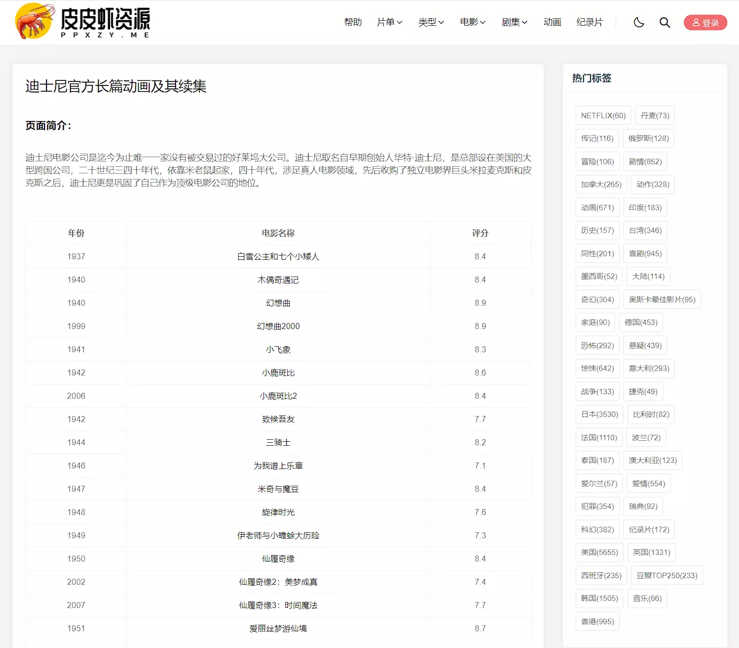 进入站点之后,整体界面的风格我个人是喜欢的,简洁,分类明确,而且提供了各种各样的片单,虽然偏单不包含资源链接,但是通过站点搜索资源应该不是难事。
