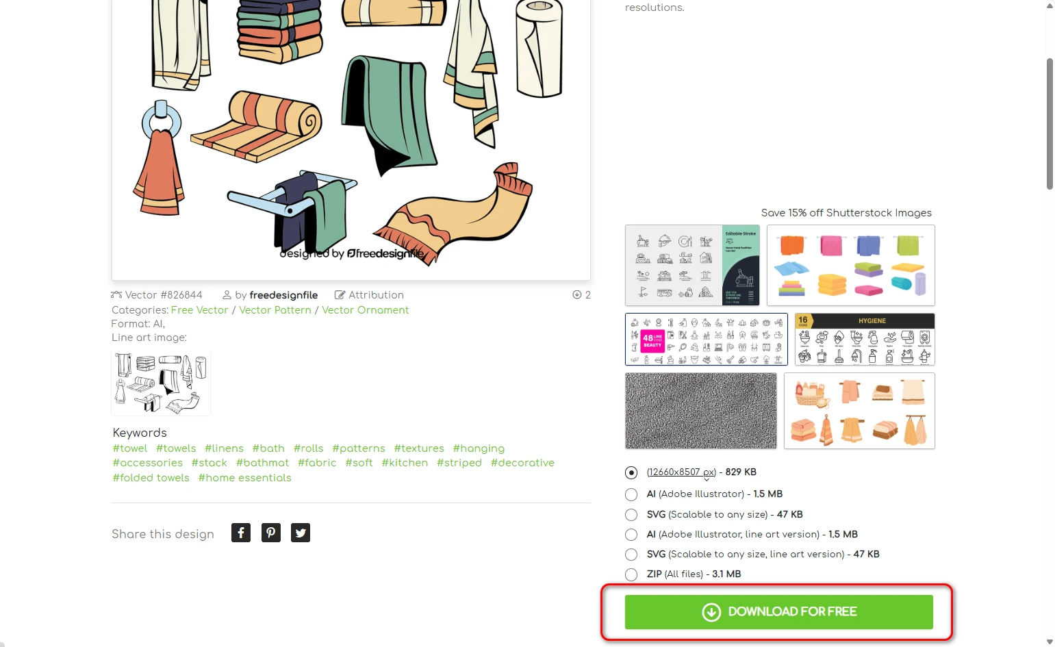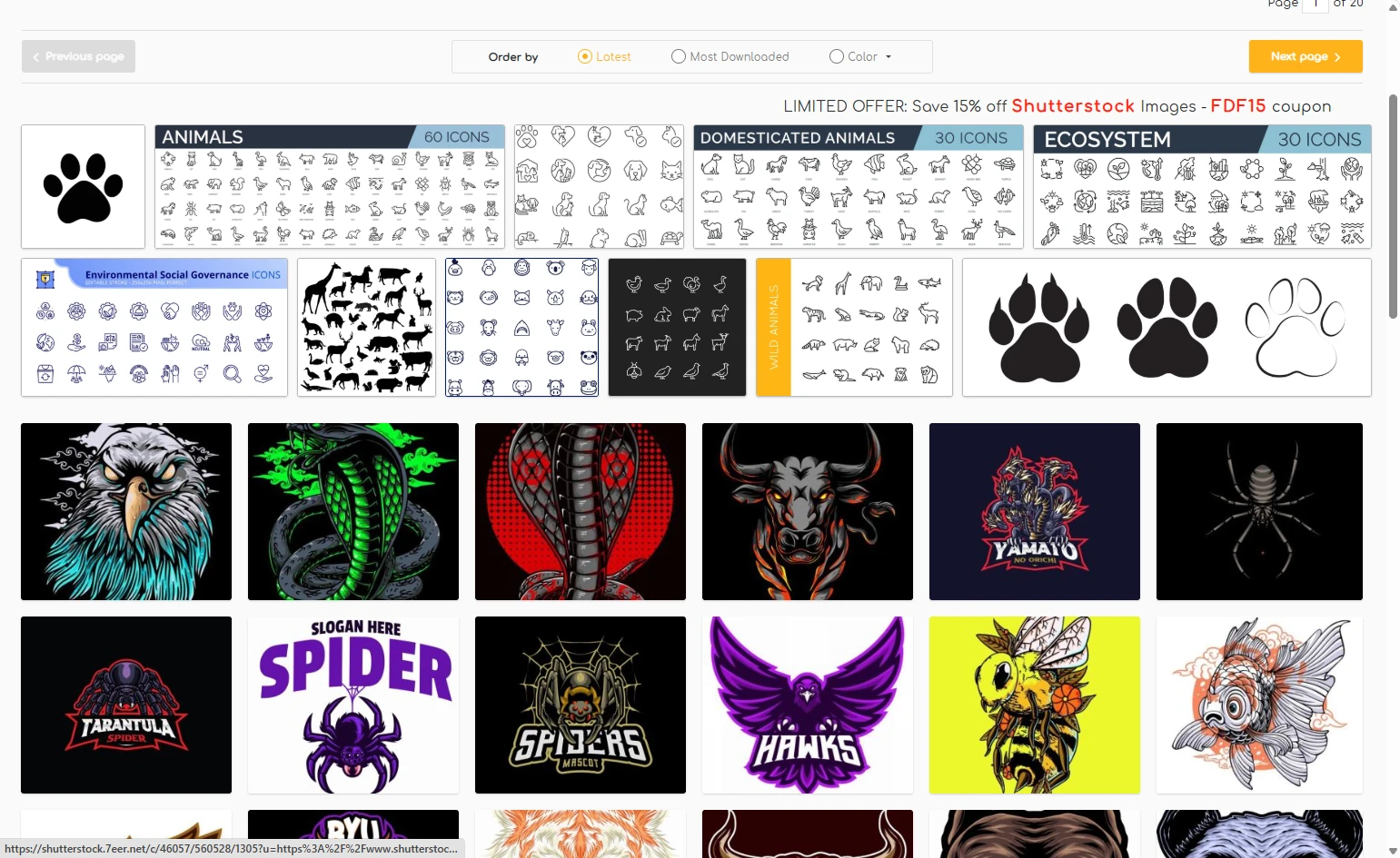内容还是比较丰富的,而且这些图标都是打包的,部分类型的素材可以直接进行打包下载,进入图标详情页面之后,往下滚动一点,即可看到下面的界面: